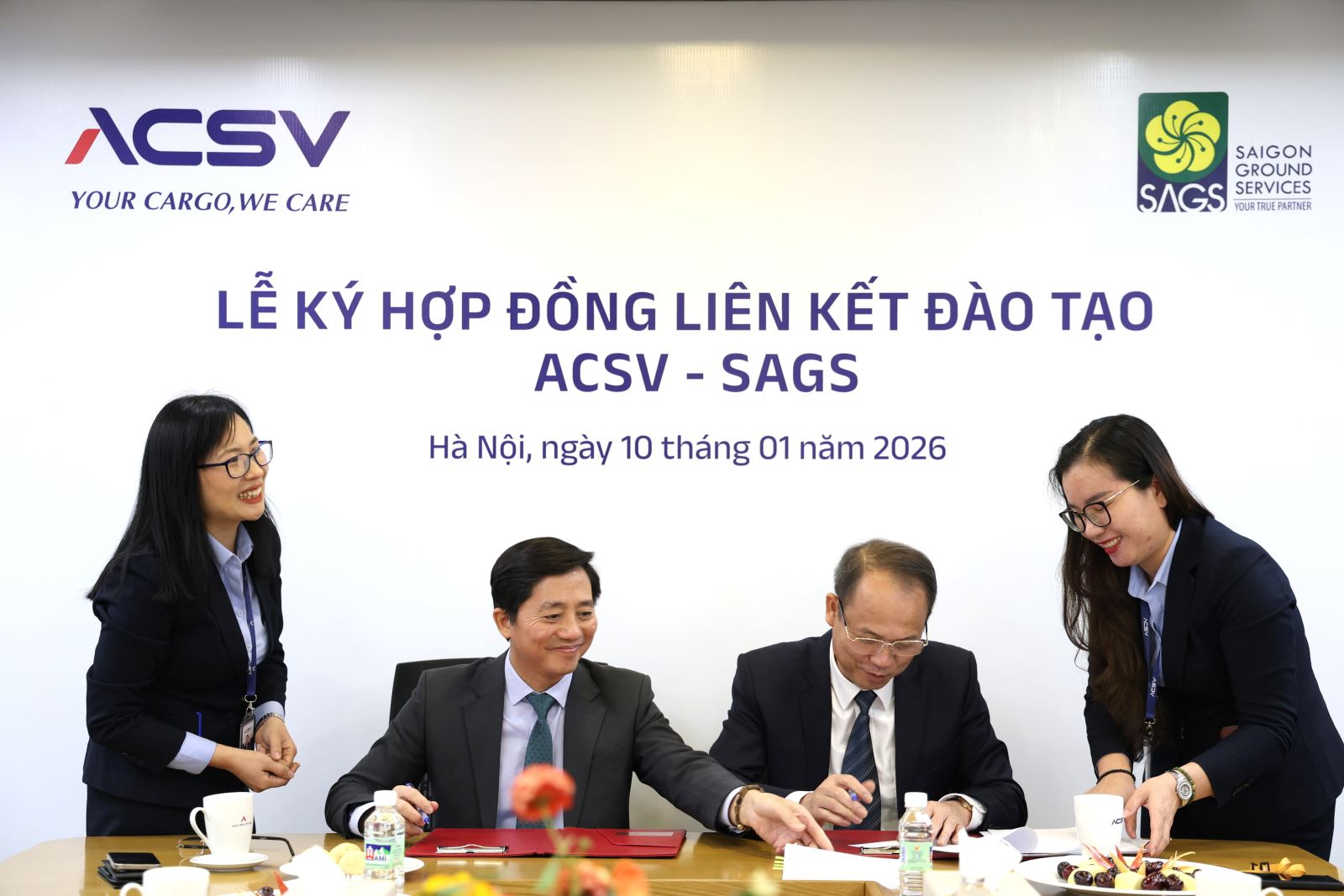 Với mong muốn tăng cường hợp tác và đưa dịch vụ đào tạo đến gần hơn với các đơn vị tại khu vực miền Nam, ngày 10/01/2026, ACSV đã tổ chức Lễ ký kết hợp đồng liên kết đào tạo với Công ty CP Phục vụ mặt đất Sài Gòn - SAGS. Sự kiện không chỉ mở ra cơ hội hợp tác mới, mà còn đánh dấu một bước tiến quan trọng trong mục tiêu đưa các chương trình đào tạo của ACSV gắn chặt hơn với nhu cầu thực tế của doanh nghiệp trong lĩnh vực hàng không và logistics.