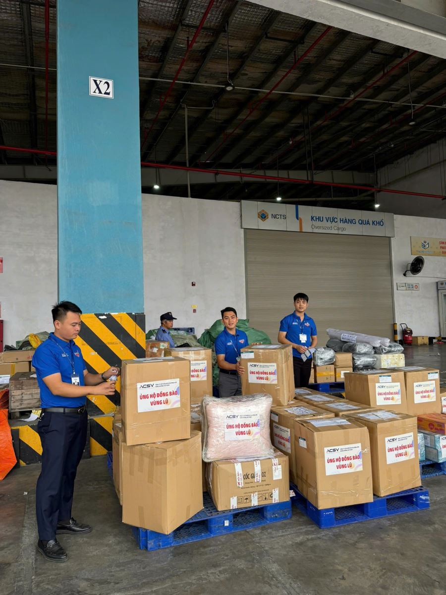 Hưởng ứng lời kêu gọi của Ủy ban Mặt trận Tổ quốc Việt Nam, Bộ Xây dựng và Cục Hàng không Việt Nam trong công tác phục vụ các chuyến bay cứu trợ đồng bào vùng lũ, ACSV đã bố trí khu vực tập kết hàng hóa cứu trợ riêng biệt, hỗ trợ phương tiện vận chuyển đến việc phối hợp cùng các đơn vị chức năng để đảm bảo hàng cứu trợ được gửi đi an toàn và nhanh chóng nhất. Tính tới ngày 05/12, ACSV đã tập kết và phục vụ phi lợi nhuận 14 chuyến bay cứu trợ với tổng cộng 150 tấn hàng hóa trong nước từ các đơn vị và nhà hảo tâm.