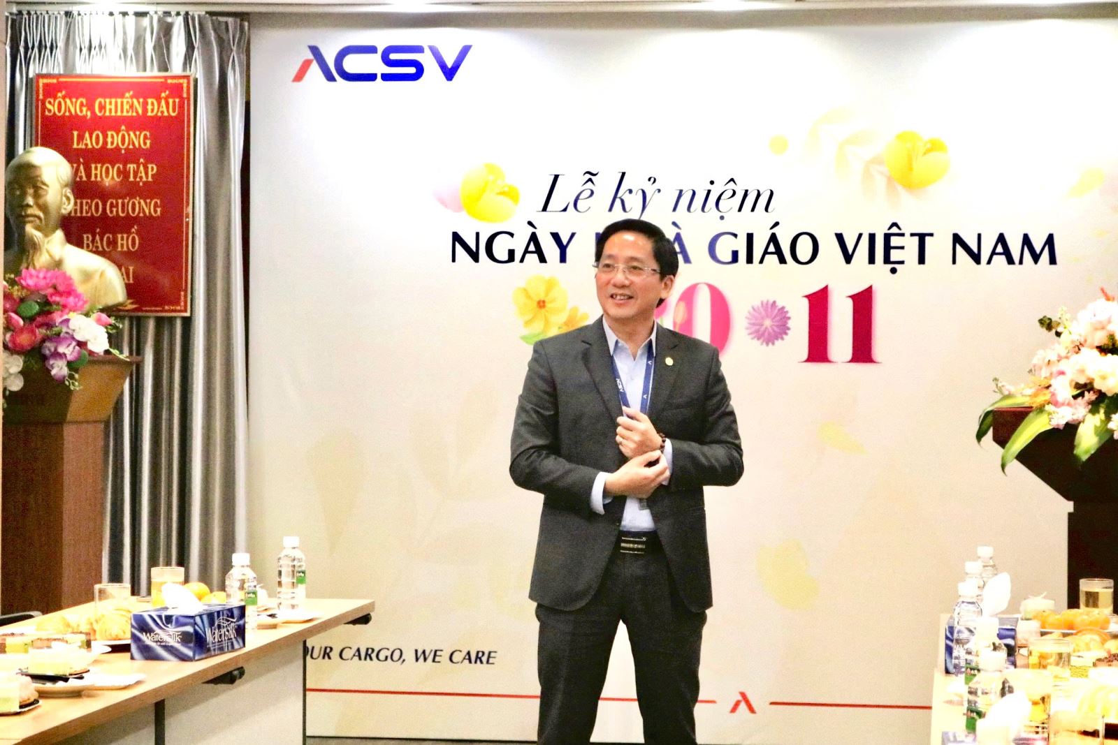 Sáng ngày 20/11/2025, Công ty CPDV hàng hóa hàng không Việt Nam (ACSV) đã tưng bừng tổ chức Lễ kỷ niệm Ngày Nhà giáo Việt Nam nhằm tri ân đội ngũ giáo viên nội bộ đã đồng hành cùng công tác đào tạo của Công ty trong suốt thời gian qua.