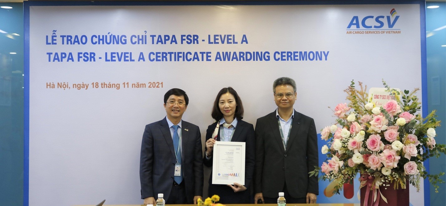 Với tiêu chí tăng cường công tác đảm bảo an ninh, phòng ngừa và khắc phục những sơ hở có nguy cơ rủi ro cho hàng hóa, góp phần nâng cao hiệu quả đảm bảo an ninh hàng không; nâng cao uy tín trong ngành hàng không và trong lĩnh vực Logistics, công ty ACSV đã triển khai áp dụng bộ tiêu chuẩn FSR của Hiệp hội bảo vệ tài sản vận chuyển TAPA. Chứng chỉ TAPA FSR Level A được cấp cho các nhà cung cấp dịch vụ kho hàng có cơ sở hạ tầng, hệ thống quản lý an ninh đáp ứng các yêu cầu ở mức độ cao nhất trong lĩnh vực an ninh kho hàng. Trong ngành hàng không, chứng chỉ TAPA FSR Level A là một trong những chứng chỉ an ninh được các hãng vận chuyển rất quan tâm khi quyết định ký kết hợp đồng, lựa chọn nhà cung cấp dịch vụ hàng hóa.