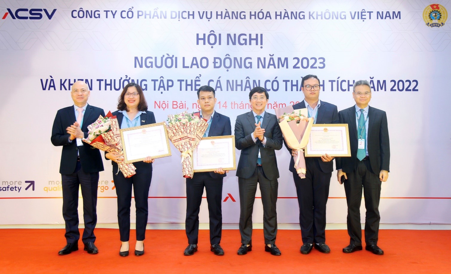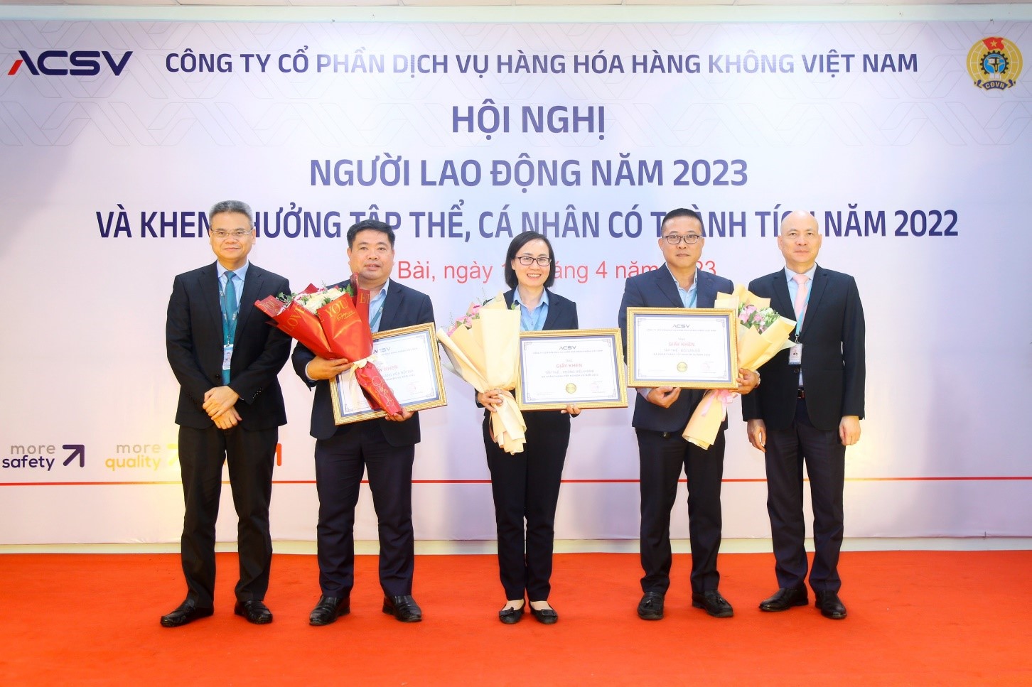 Ngày 14/4/2023 vừa qua, Công ty CP Dịch vụ Hàng hóa Hàng không Việt Nam (ACSV) đã long trọng tổ chức Hội nghị Người lao động năm 2023 và Lễ khen thưởng tập thể, cá nhân có thành tích năm 2022.