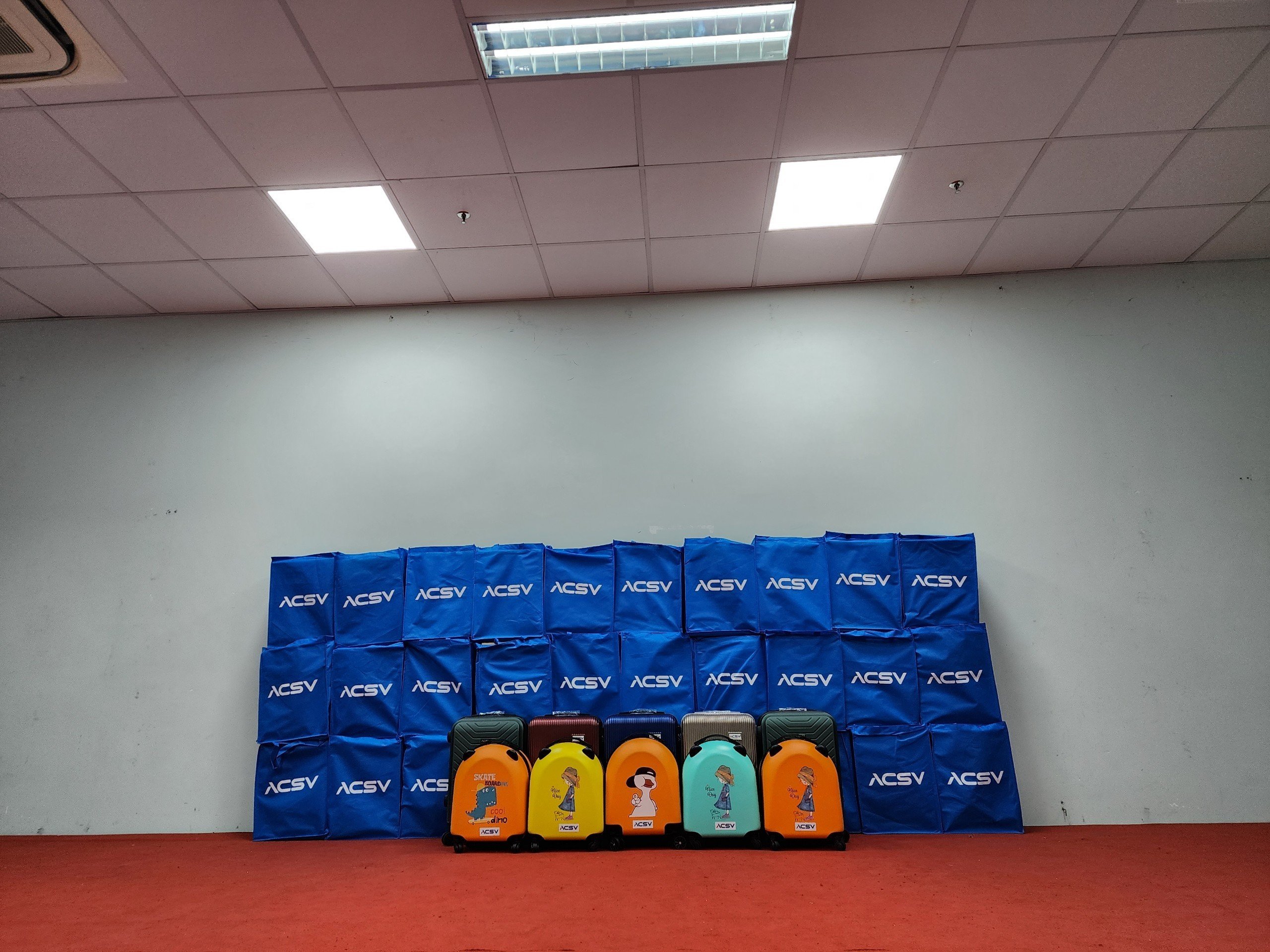 Cùng chung niềm vui hân hoan trên khắp cả nước chào mừng ngày Quốc tế thiếu nhi 01/6, được sự đồng ý và tạo điều kiện của Ban lãnh đạo công ty, Đoàn thanh niên cơ sở ACSV đã triển khai tặng quà cho con em CBNV với mong muốn mang đến niềm vui nho nhỏ cho các con để khởi đầu một mùa hè đầy thú vị. Món quà dành tặng các con năm nay là những chiếc vali in logo ACSV xinh xắn đầy màu sắc. Hy vọng món quà nhỏ xinh sẽ đồng hành cùng các con trong chuyến đi khám phá thiên nhiên kỳ thú và những vùng đất đầy mới lạ.