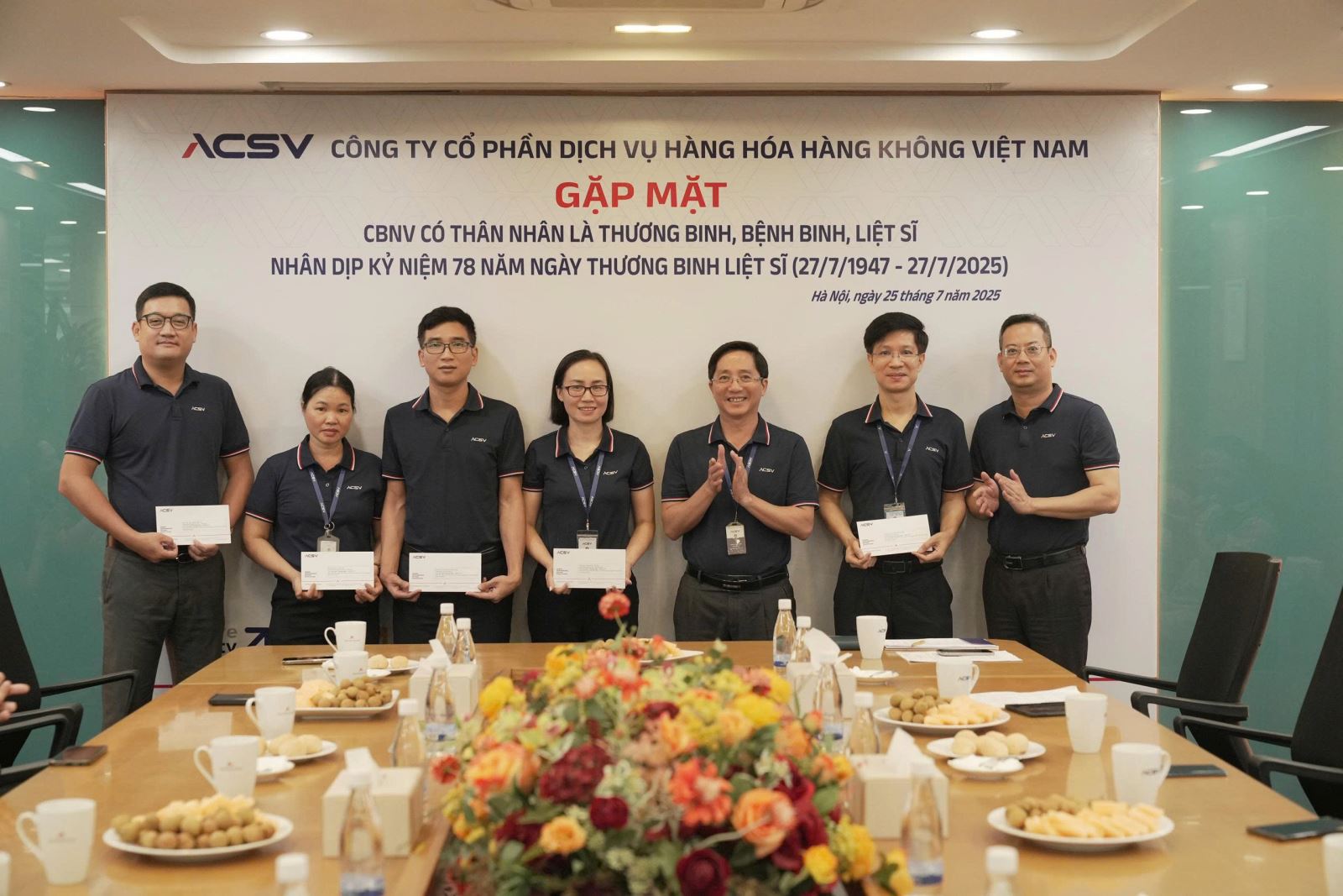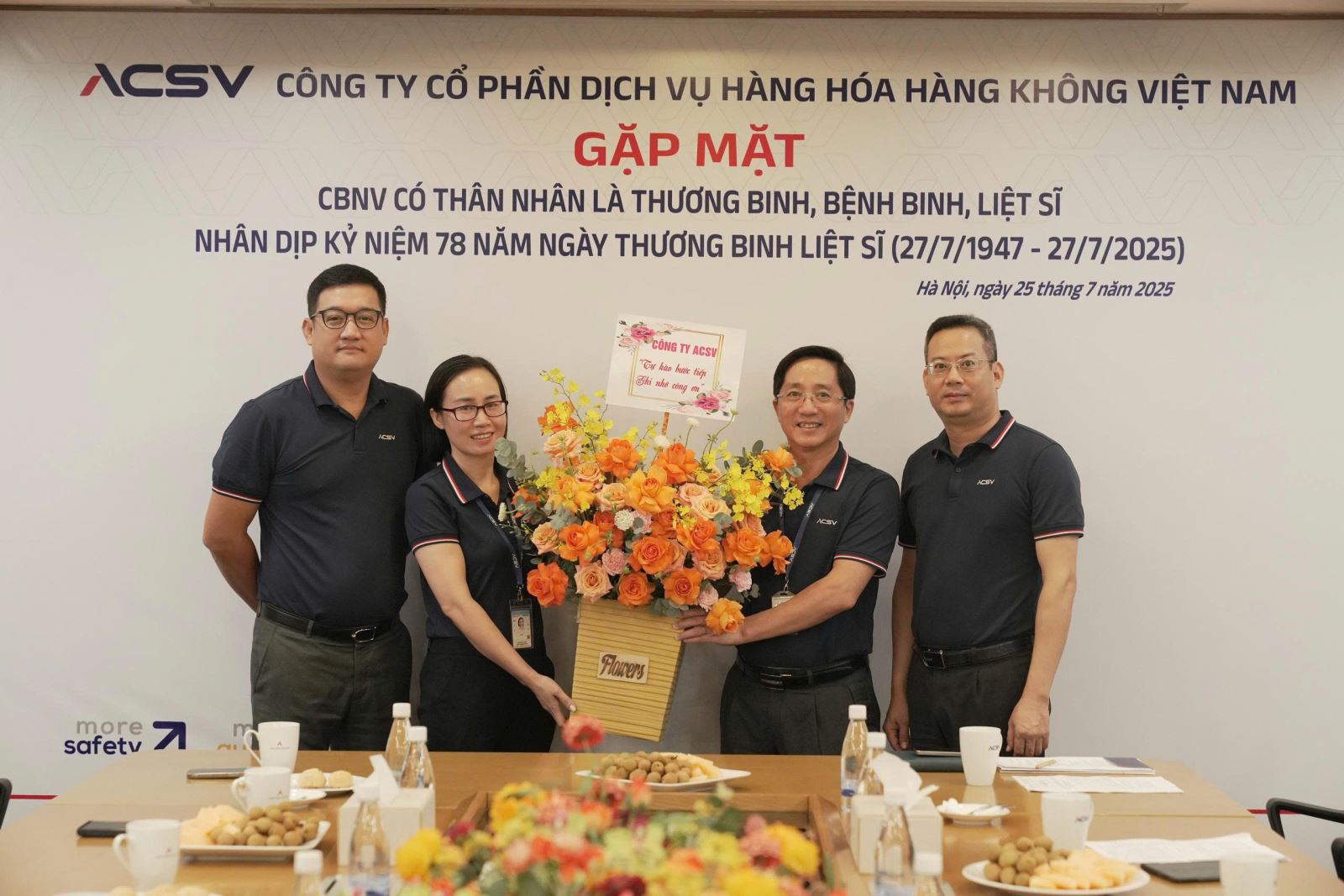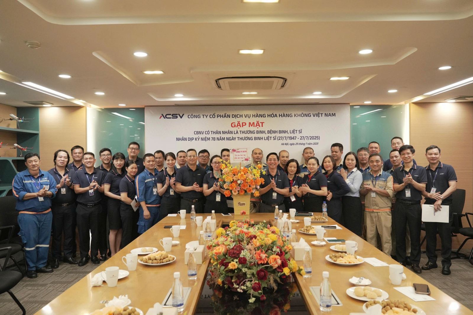 Nhân dịp kỷ niệm 78 năm Ngày Thương binh – Liệt sĩ (27/7/1947 – 27/7/2025), sáng ngày 25/7/2025 tại Trụ sở Công ty, Ban Lãnh đạo và Ban chấp hành Công đoàn cơ sở Công ty Cổ phần Dịch vụ Hàng hóa Hàng không Việt Nam (ACSV) đã tổ chức buổi gặp mặt tri ân các cán bộ, nhân viên có thân nhân là thương binh, bệnh binh, liệt sĩ trong không khí trang trọng, ấm cúng và đầy xúc động.