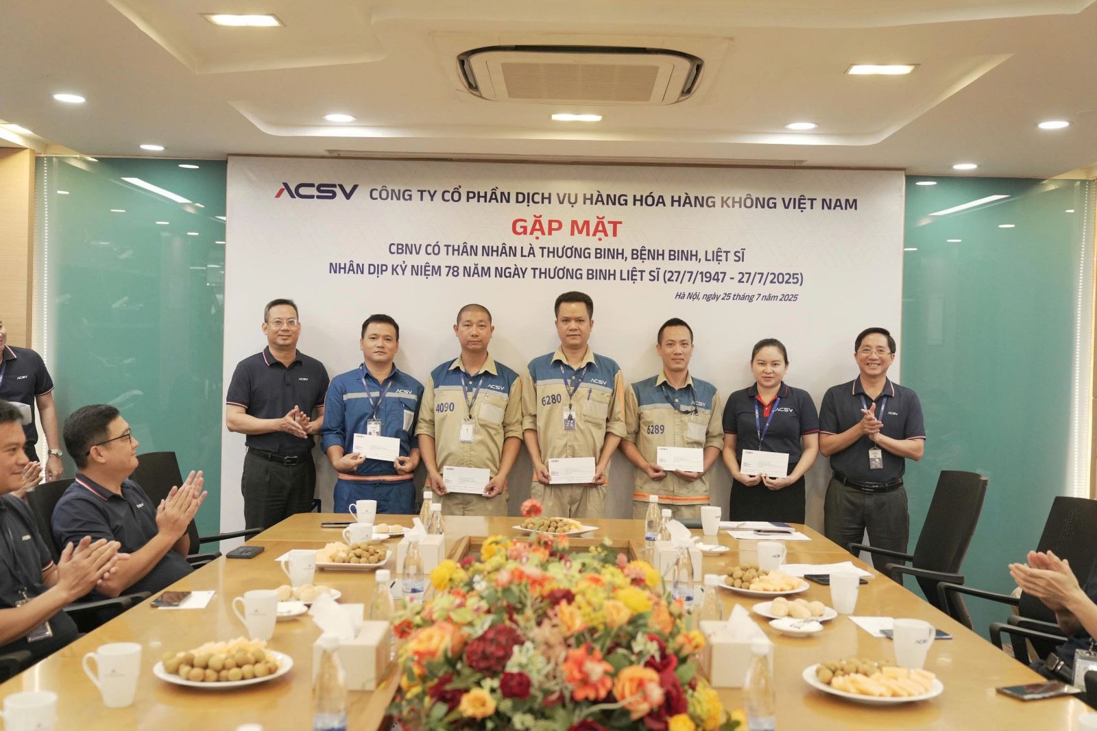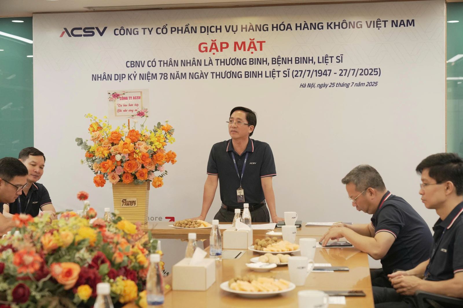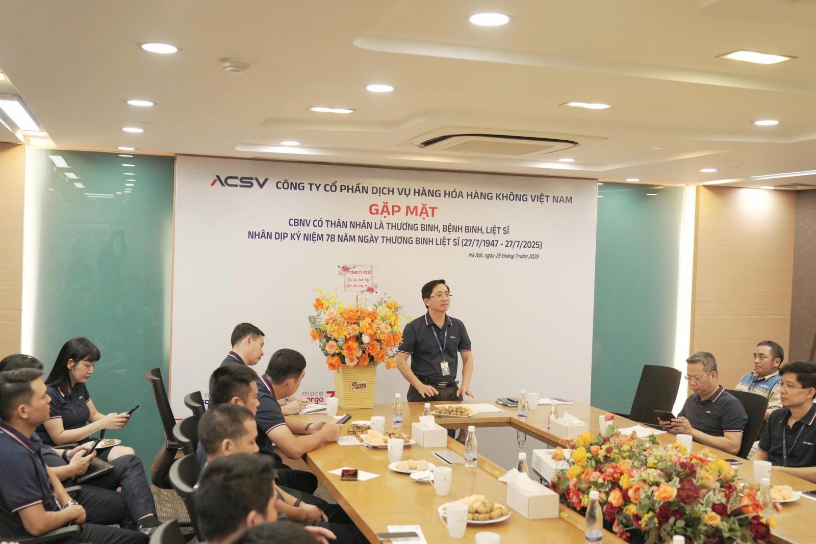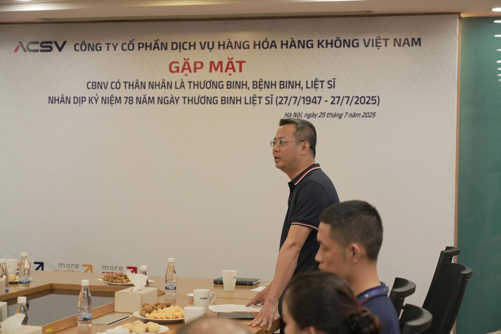 Nhân dịp kỷ niệm 78 năm Ngày Thương binh – Liệt sĩ (27/7/1947 – 27/7/2025), sáng ngày 25/7/2025 tại Trụ sở Công ty, Ban Lãnh đạo và Ban chấp hành Công đoàn cơ sở Công ty Cổ phần Dịch vụ Hàng hóa Hàng không Việt Nam (ACSV) đã tổ chức buổi gặp mặt tri ân các cán bộ, nhân viên có thân nhân là thương binh, bệnh binh, liệt sĩ trong không khí trang trọng, ấm cúng và đầy xúc động.