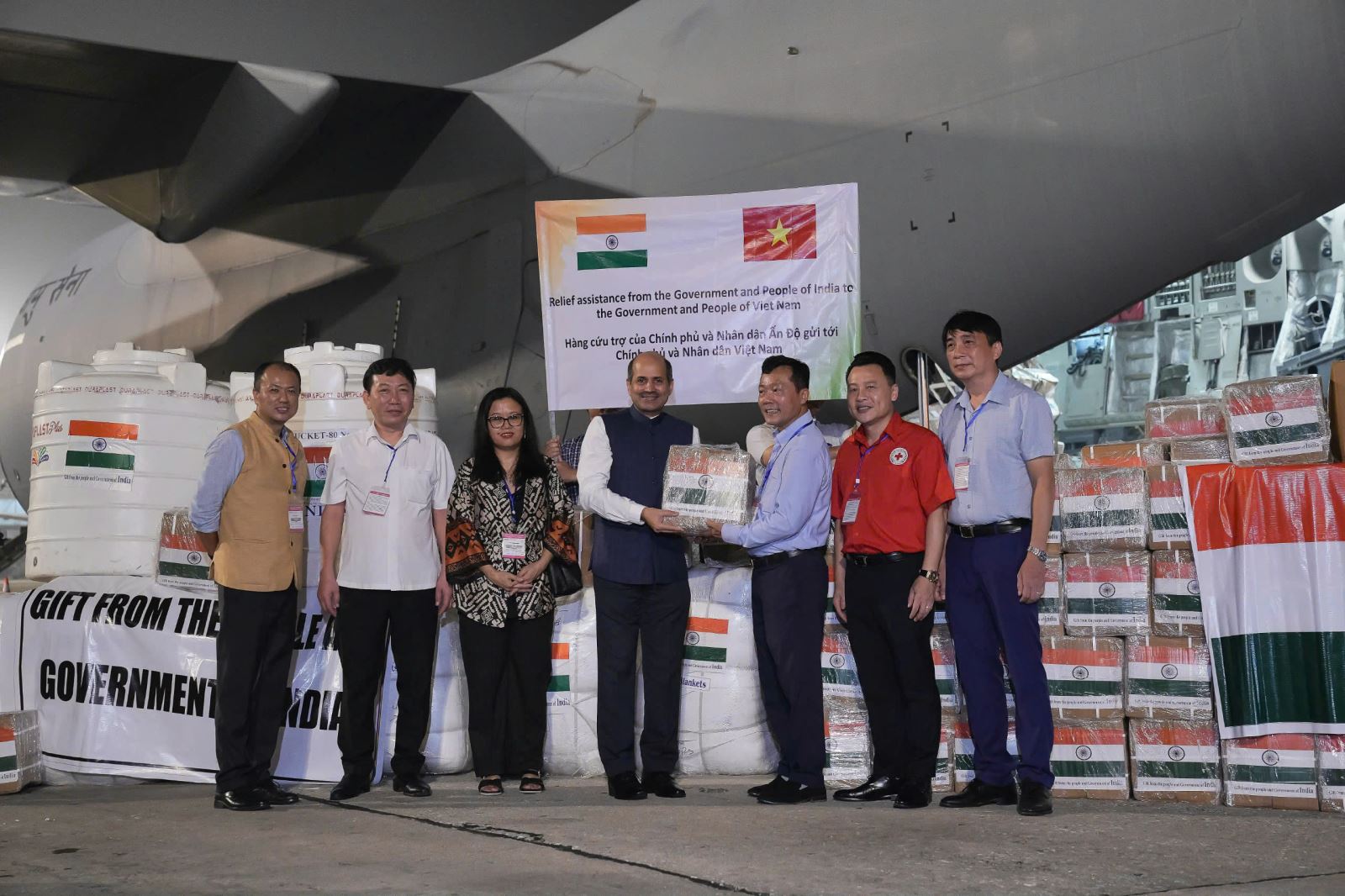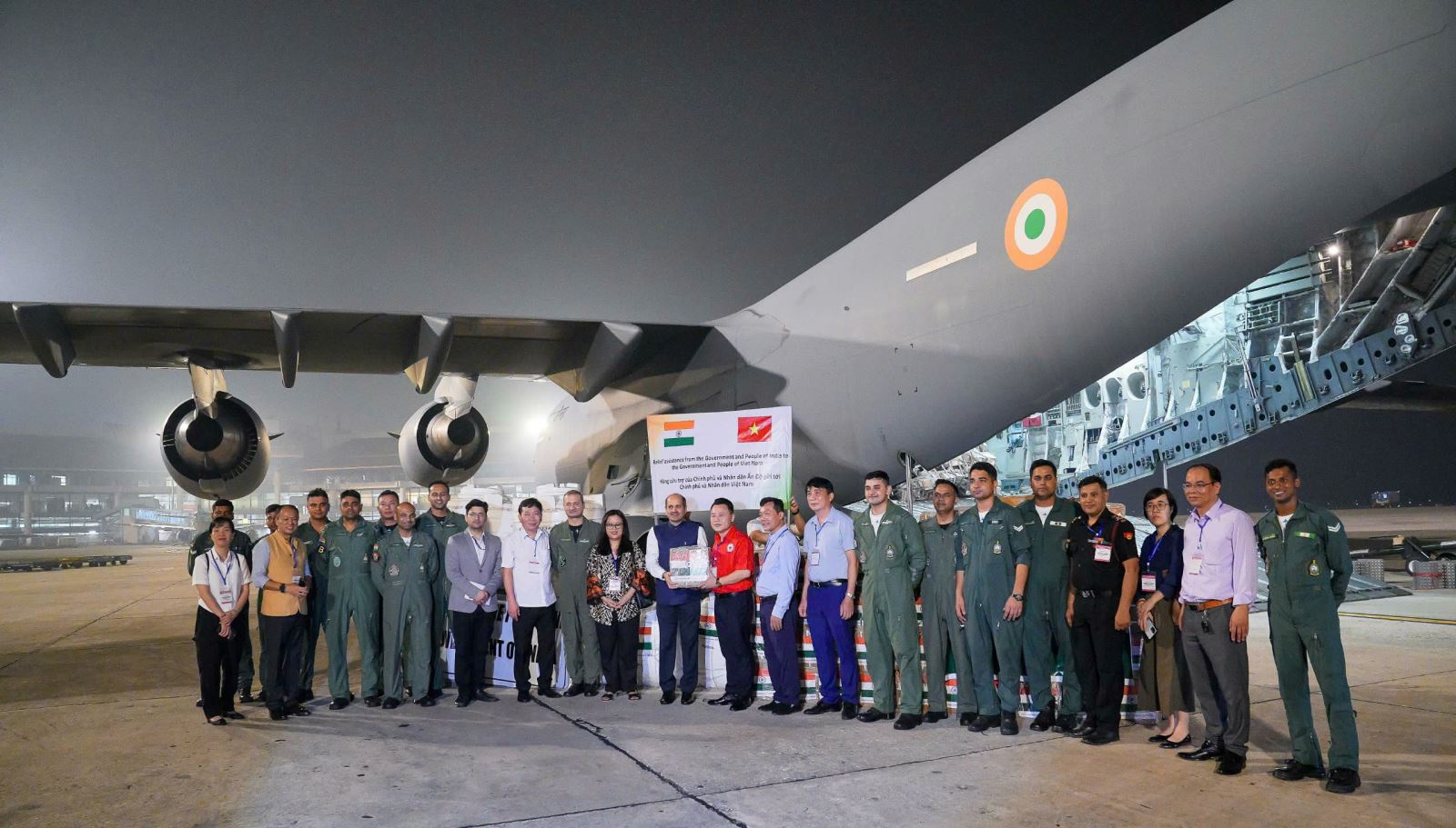 Máy bay quân sự mang số hiệu IFC 1234 của Không quân Ấn Độ khởi hành từ Sân bay Ghaziabad Hidon, Ấn Độ đã hạ cánh tại Sân bay Quốc tế Nội Bài vào 23h45 ngày 15/09/2024. Đây là chuyến bay chuyên chở nhu yếu phẩm có tổng trị giá 1 triệu USD nhằm khắc phục hậu quả từ cơn bão Yagi do Chính phủ Ấn Độ tài trợ cho Việt Nam