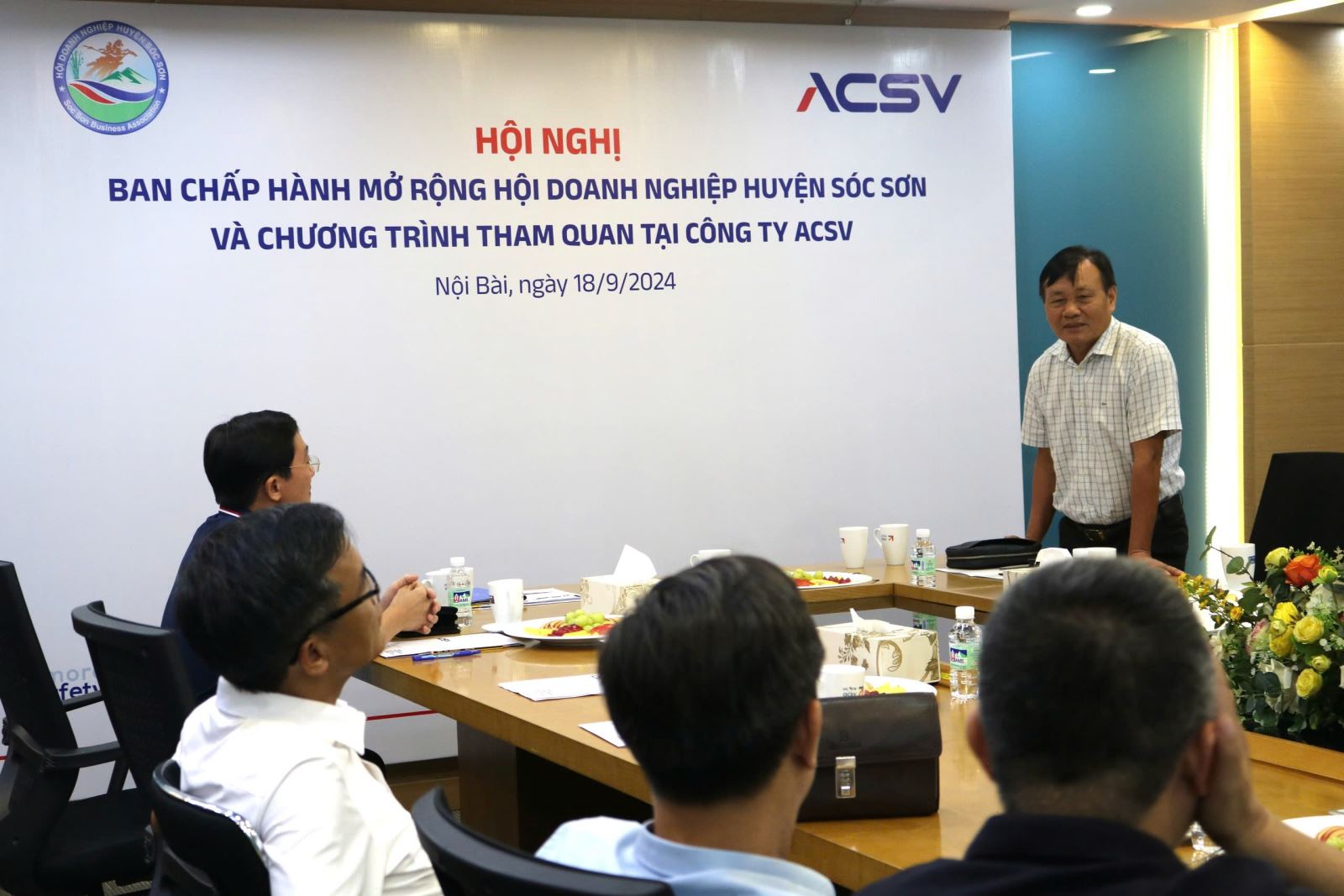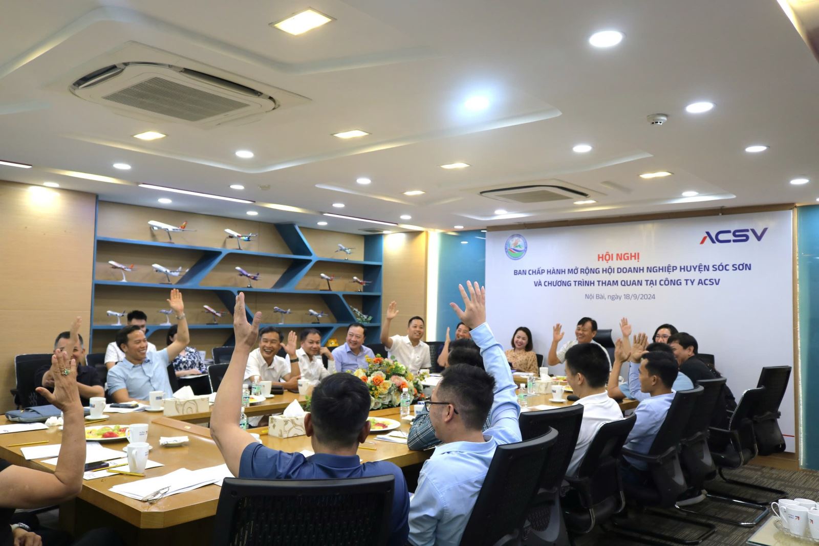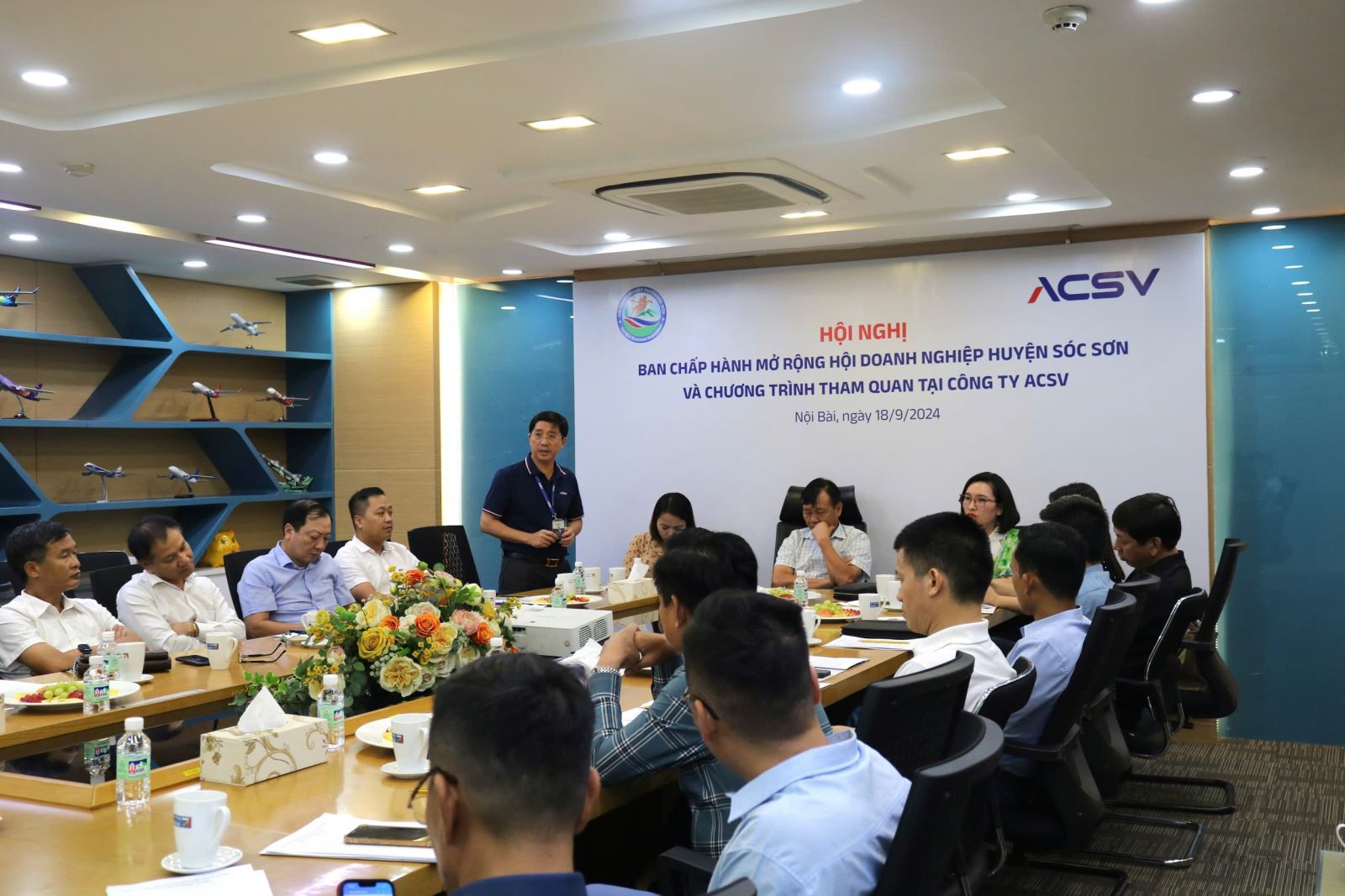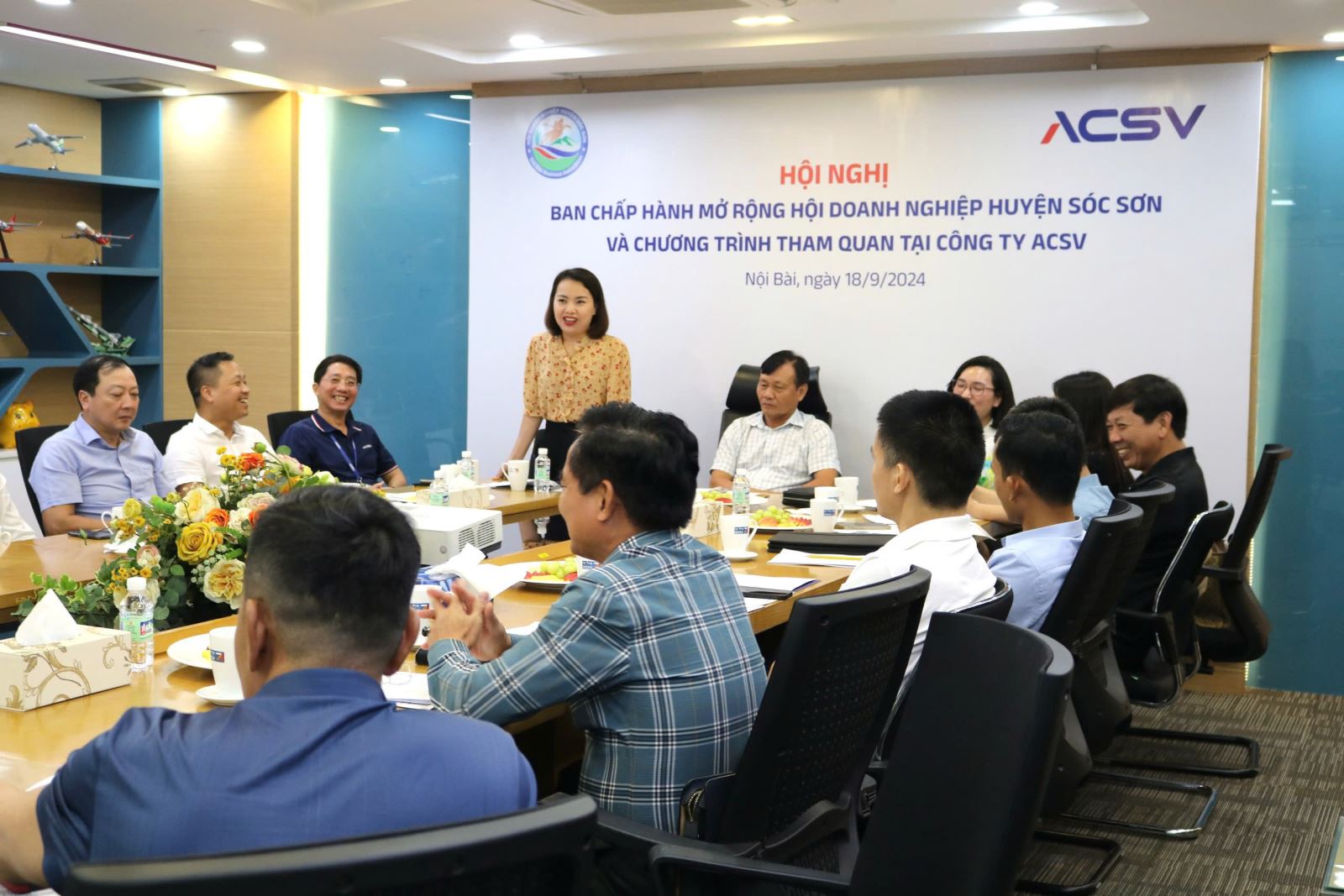 Nằm trong kế hoạch làm việc của Hội doanh nghiệp huyện Sóc Sơn, chiều ngày 18/9/2024, tại trụ sở Công ty CPDV hàng hóa hàng không Việt Nam (ACSV), Ban Chấp hành mở rộng Hội Doanh nghiệp huyện Sóc Sơn đã tổ chức cuộc họp quan trọng với nội dung tập trung báo cáo tình hình hoạt động 6 tháng đầu năm và thảo luận kế hoạch Quý IV/2024.