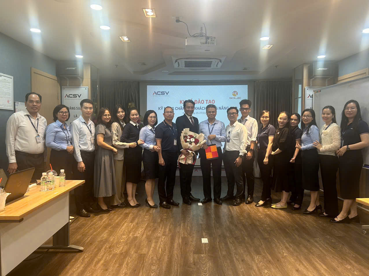Thực hiện theo sự chỉ đạo của Ban Lãnh đạo công ty, ACSV đã kết hợp cùng Học viện hàng không Raymond tổ chức khoá đào tạo "Kỹ năng chăm sóc khách hàng nâng cao" cho 18 CBNV đến từ các Phòng/Đội, là những nhân tố mũi nhọn trong việc xây dựng quy trình, tổ chức đào tạo và lan toả tinh thần trong quá trình xây dựng Kỹ năng chăm sóc khách hàng tại ACSV.