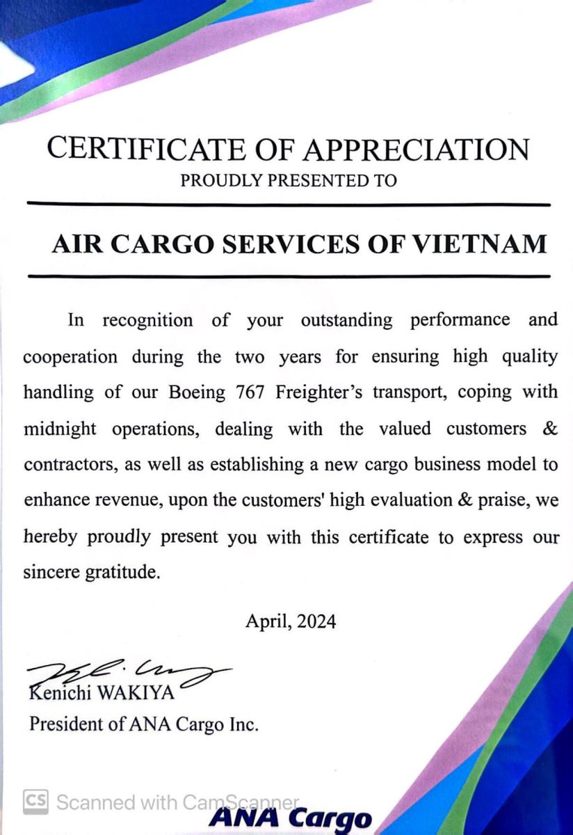 Trước tình hình thị trường hàng hoá hàng không đầy biến động kể từ năm 2020 đến nay, hãng ANA không những duy trì tần suất khai thác các chuyến bay thường lệ với sản lượng hàng hóa ổn định mà Hãng còn tăng cường 4 chuyến bay Freighter/tuần, sử dụng loại tàu bay B767F để khai thác đường bay thẳng từ Hà Nội đến các sân bay lớn của Nhật Bản như: sân bay Haneda, sân bay Narita và các chặng bay nối đến Mỹ nhằm cung ứng tối đa nhu cầu vận tải hàng hóa hàng không của thị trường. Việc gia tăng tần suất bay đã góp phần nâng tổng sản lượng hàng hoá của hãng ANA mà ACSV đã phục vụ lên 1,5 lần so với thời điểm Hãng chỉ vận hành tàu bay chuyên chở hành khách.